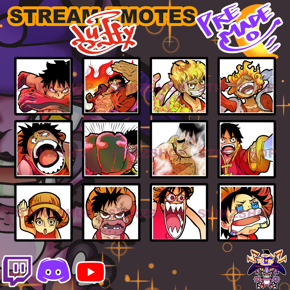 Introducing StrawHat Captain , a pack of custom emotes for your streaming channel. This item bundle contains 18 unique chat emotes. The perfect pixel fans of Luffy Captain From OnePieces. Each design comes in multiple sizes for easy upload to Twitch and another Platform
