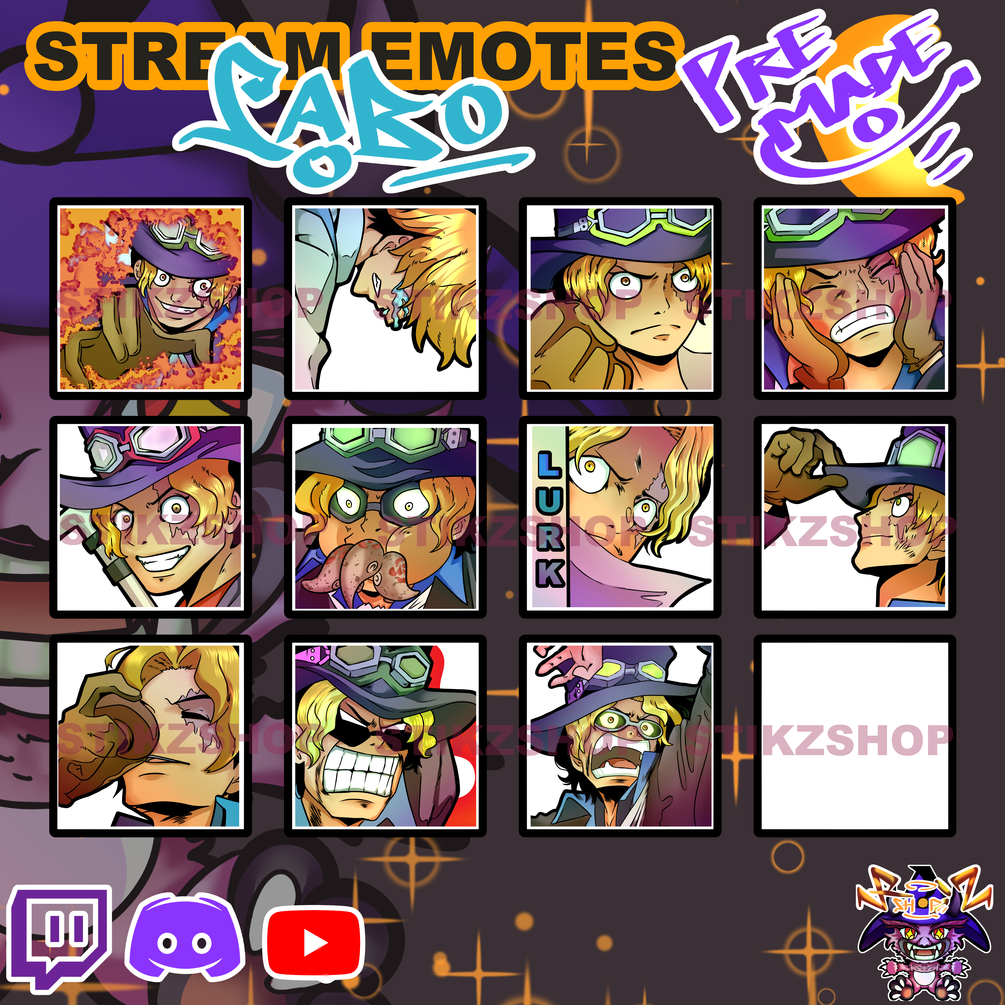 Introducing Sabo san, a pack of custom emotes for your streaming channel. This item bundle contains 11 unique chat emotes. The perfect pixel fans of Sabo From Onepieces. Each design comes in multiple sizes for easy upload to Twitch, YouTube, Facebook Gaming, or Discord.